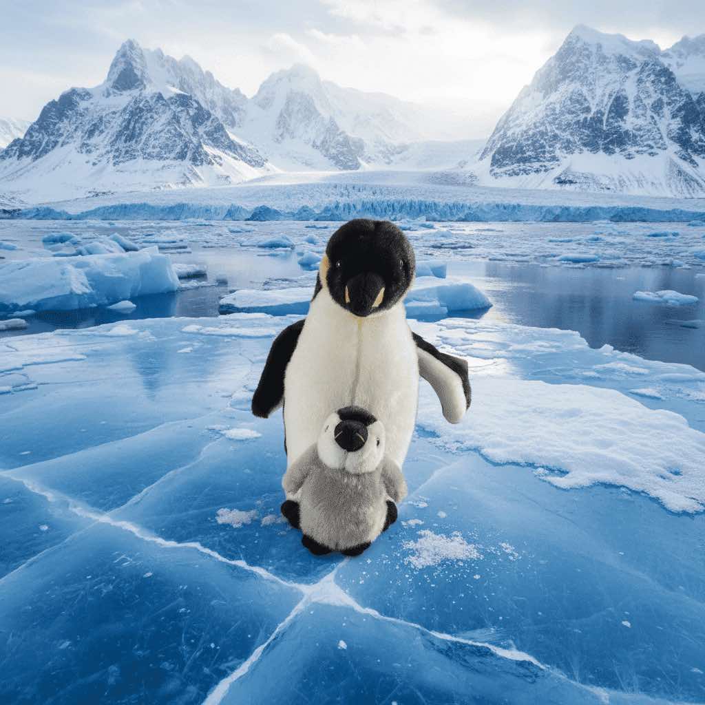 Le petit manchot, niché contre son parent, en fait une peluche réconfortante et un cadeau idéal pour :